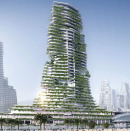 全城佈滿垂直綠牆、空中花園和屋頂花園系統,形成天然屏障,具有降低能耗、淨化空氣、涵養雨水、減弱噪音等作用,就像生活在森林裡。
